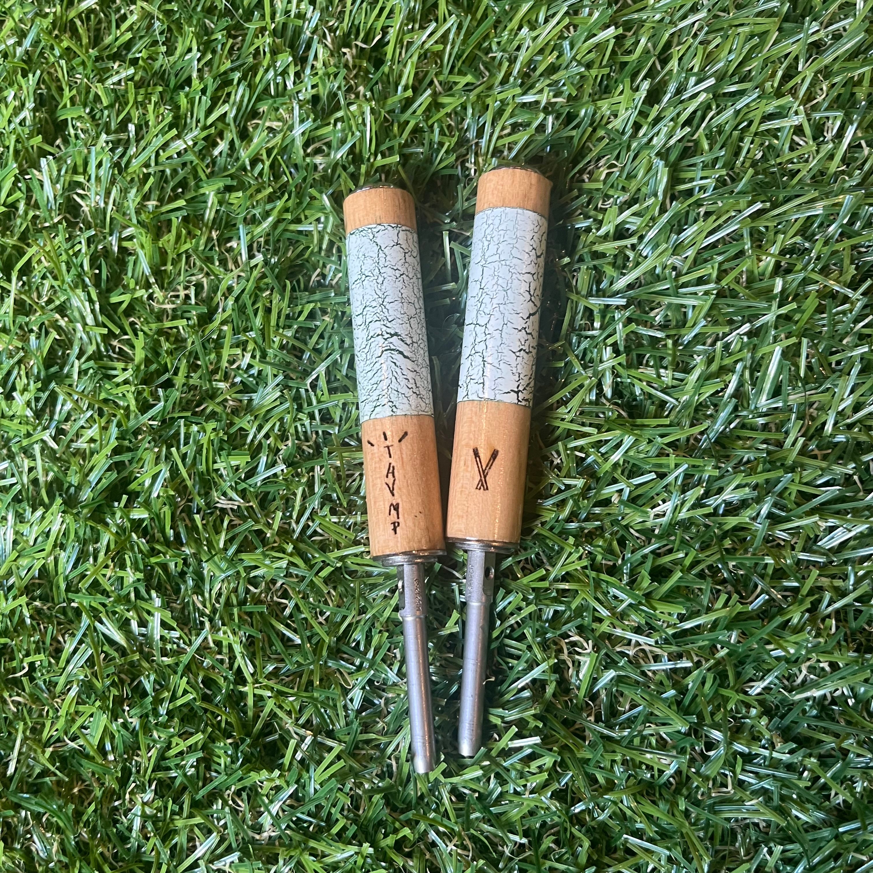 Leave the golf course better than you found it. These hand painted tools fit nicely in your pocket and help fix any imperfections on the putting surface. Fix the ball pitch mark and roll it with the handle #FixNRoll